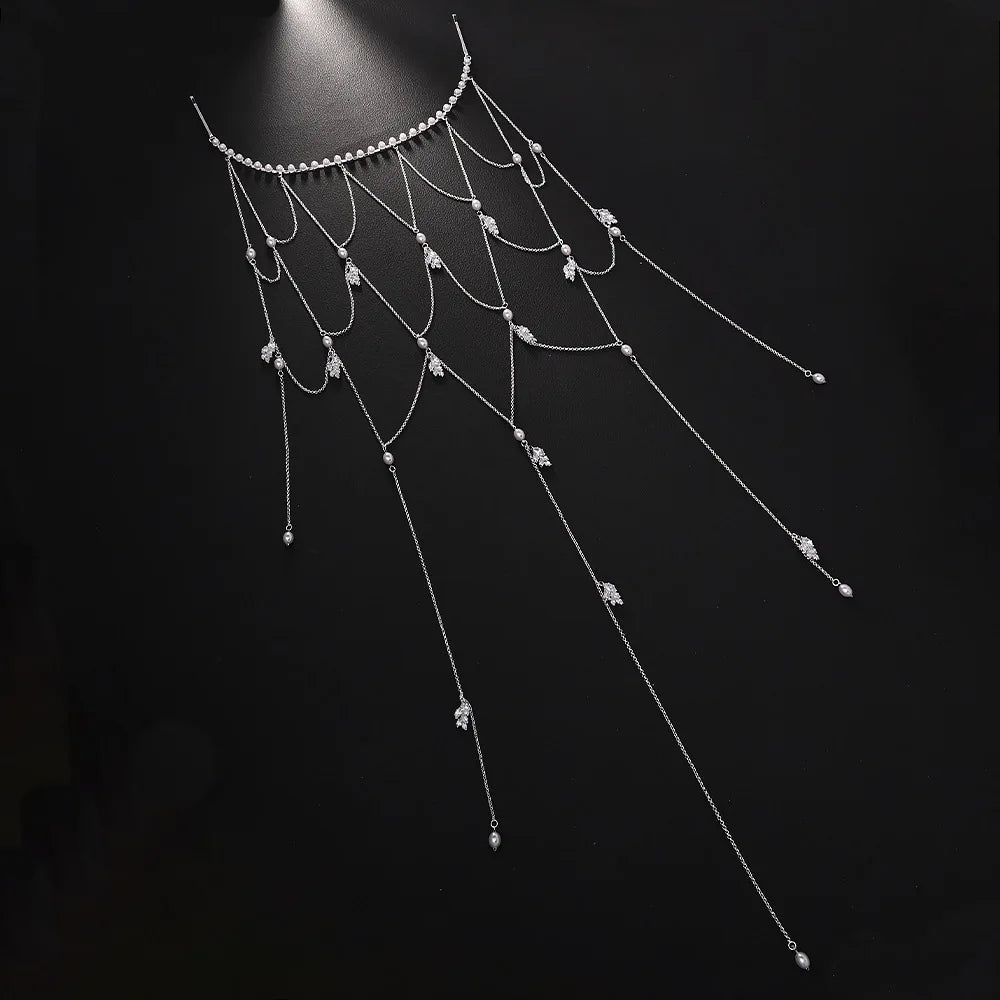 This breathtaking head jewelry is intricately designed. Decorated with cubic zirconia stones. This luxury handmade diadem is created with a sturdy, yet pliable copper, metal frame. Length: 57cm This Head Jewelry is designed so you can easily pin it into your hair. When you place our crowns on your beautiful head you will be thrilled by their excellence.